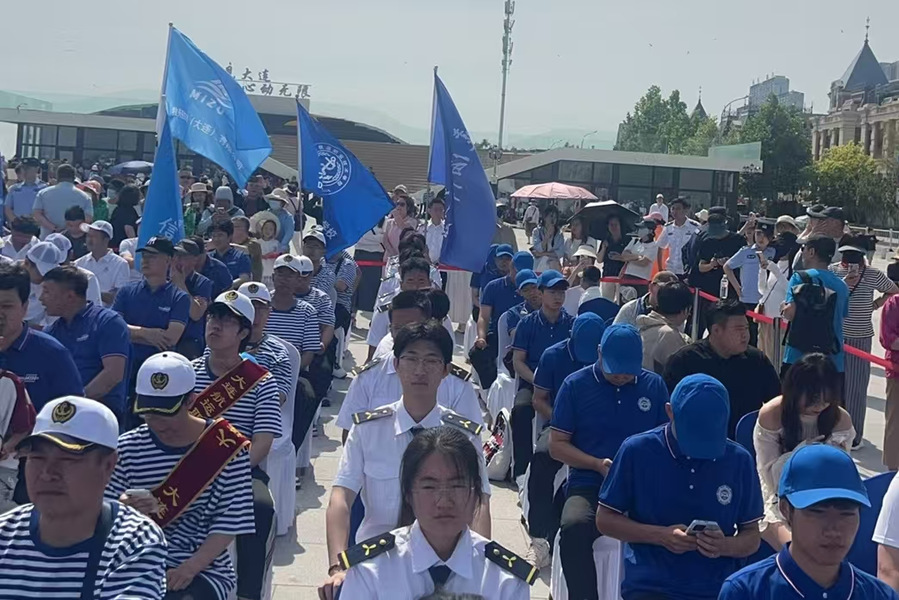 6月 21日,由辽宁海事局主办的“大爱海员 连通世界”2025海员文化活动周启动仪式,在东港商务区港东五街爱墙广场隆重举行。航海与船舶工程公司党委副书记陈禹娜带领员工代表,携手大连华洋海事有限公司经理张伟一行共同参与此次盛会,共促海员文化传承与航海事业发展。