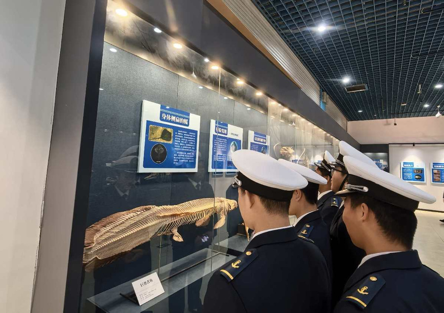 大连自然博物馆设有四层展厅,涵盖十大主题。从古老的海洋生物化石到现代海洋生物标本,丰富的展品为同学们开启了一场探索海洋奥秘的沉浸式体验。通过观摩巨大的鲸鱼骨架,同学们深刻认识到海洋生物的多样性及其在生态系统中的重要地位;通过观察形态各异的鱼类标本,大家对海洋生物的形态结构有了更为直观的理解。这些珍贵的展品不仅激发了同学们对海洋世界的好奇,更让他们在亲身感受中增强了蓝色海洋意识,厚植了守护海洋的责任与情怀。