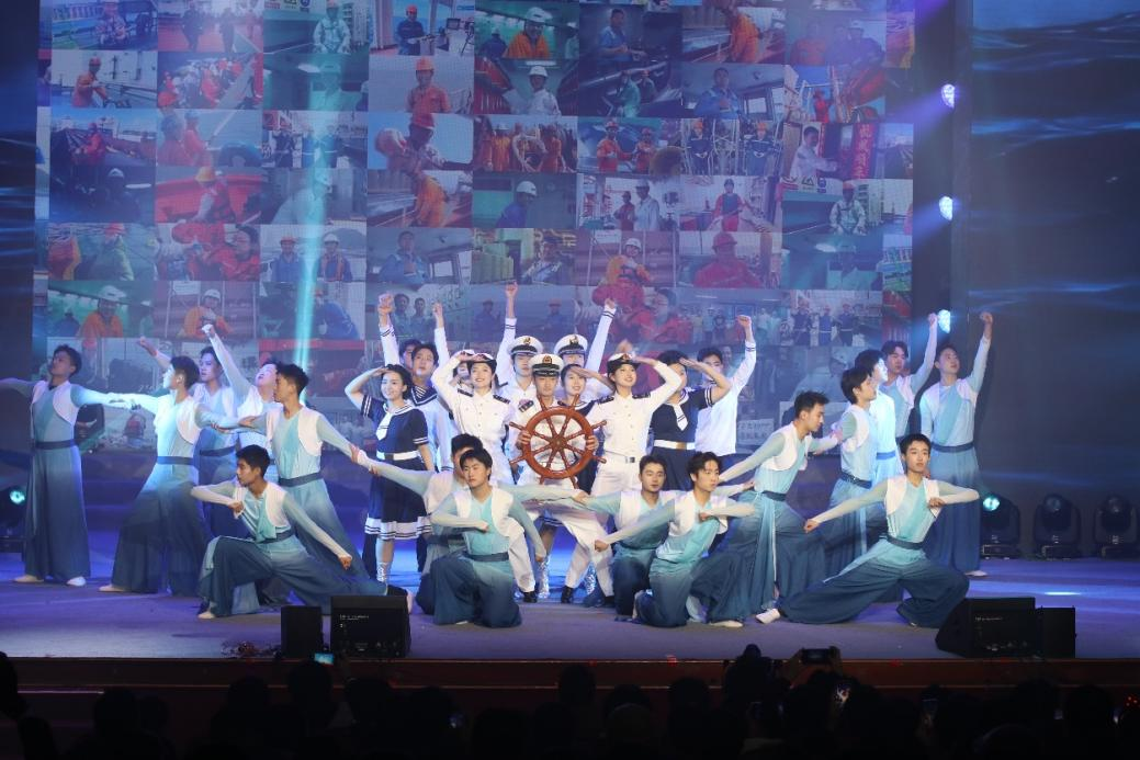 本次汇演公司师生共参演了开场舞《我爱这蓝色的海洋》、开场歌曲《登高》、合唱《星辰大海》等8个不同类型节目的演绎其中舞蹈《航行在世界》32名航船学子独立完成,历经一个精心创排节目鲜明主题和精彩的展现表达了大海大人向海图强的精神内核,收获满堂喝彩